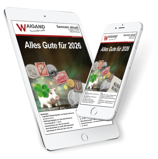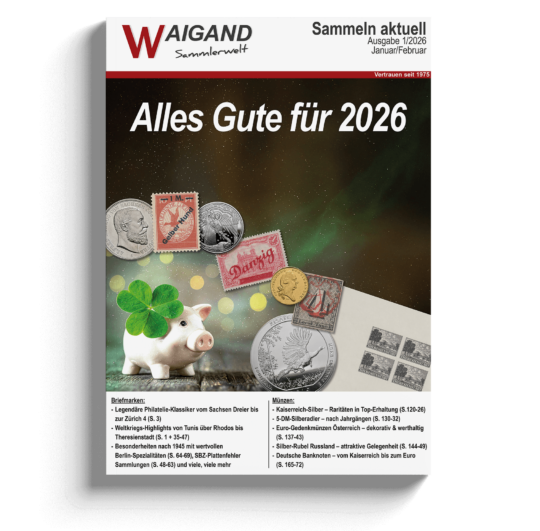 Unser kostenloser Briefmarkenkatalog inklusive Münzen „Sammeln aktuell“ erscheint alle 6 Wochen NEU mit über 6000 Sammelartikeln. Holen Sie sich historische Sammlungen, Neuheiten und Top-Angebote aus der Welt des Sammelns nach Hause.
